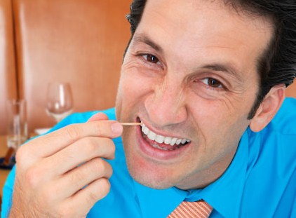 Does he pick his teeth with his finger in front of company?
